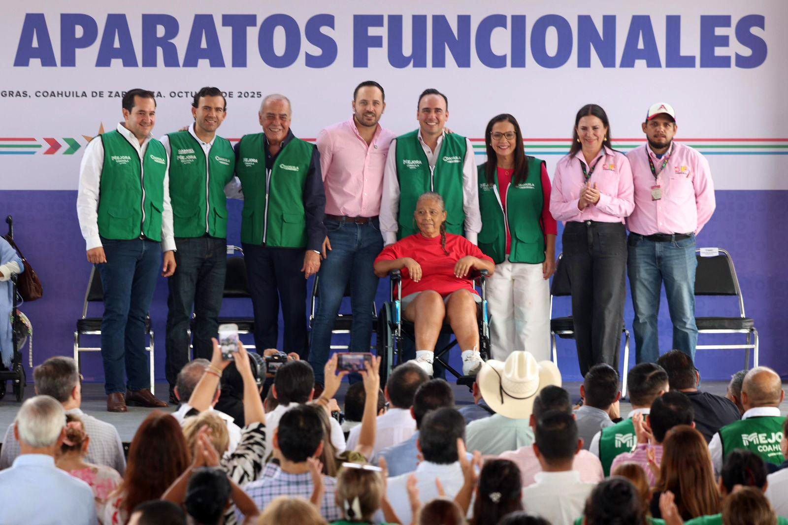 Piedras Negras, Coahuila de Zaragoza; Octubre de 2025.- Desde el municipio de Piedras Negras, el gobernador Manolo Jiménez Salinas detonó la entrega de mil aparatos funcionales para coahuilenses de las cinco regiones del estado, y destacó que en lo que va de su administración se han invertido, de manera extraordinaria, alrededor de mil millones de pesos en el tema de salud.