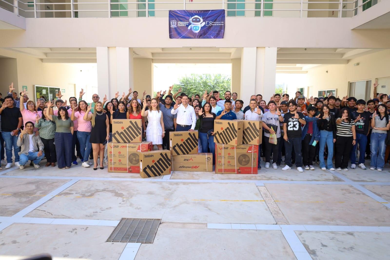 TORREÓN, Coahuila. Octubre de 2025. El rector de la Universidad Autónoma de Coahuila, Octavio Pimentel Martínez, entregó 25 equipos de cómputo y 25 aires acondicionados a la comunidad universitaria de la Escuela de Sistemas de Unidad Laguna e inauguró la cafetería del plantel.