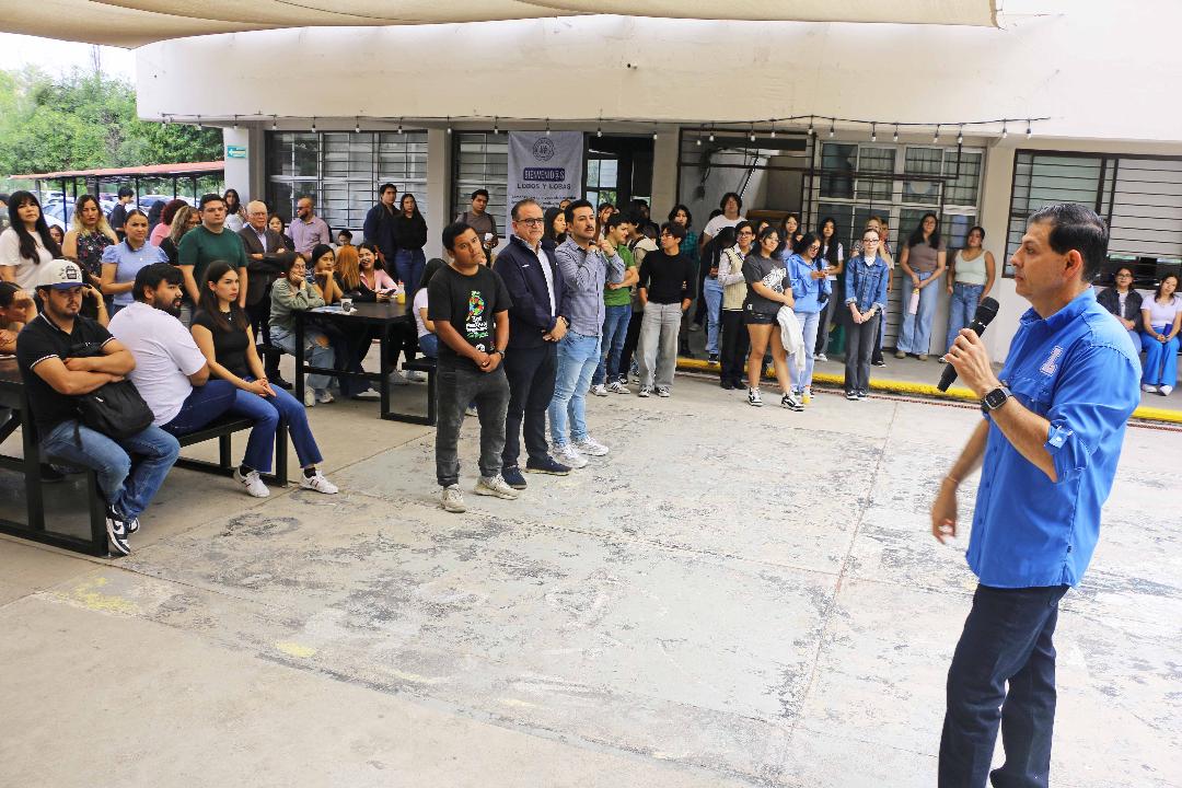 SALTILLO, Coahuila. Agosto de 2025. Con un mensaje de motivación y orgullo universitario, el rector de la Universidad Autónoma de Coahuila, Octavio Pimentel Martínez, dio la bienvenida a la comunidad estudiantil de la Facultad de Mercadotecnia.
